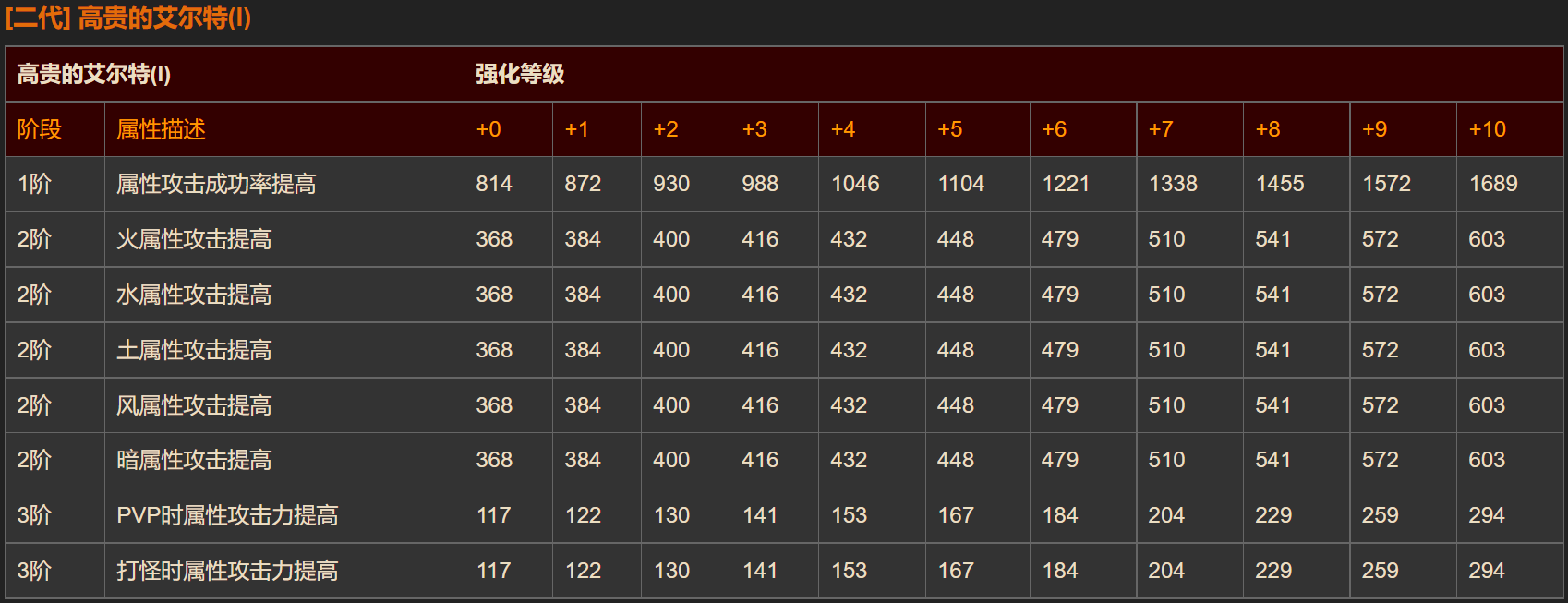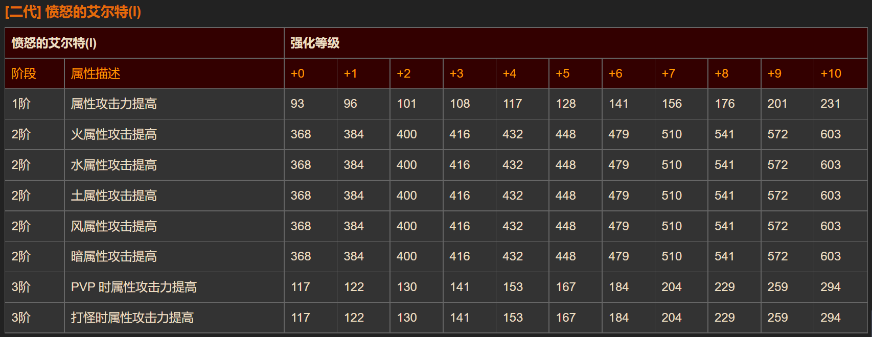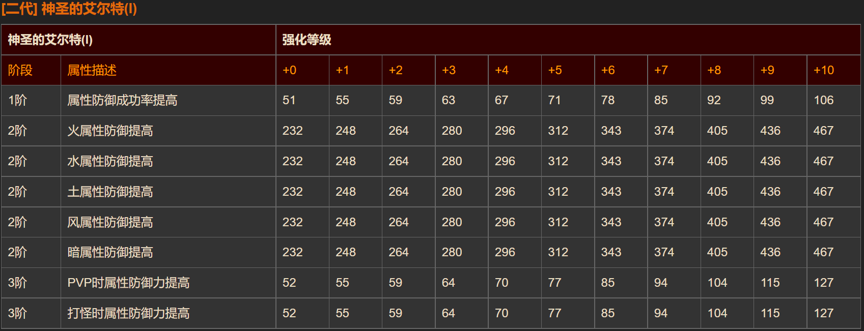 二代艾尔特有两种套装属性:斗志(攻击)、狂热(防御),可以弄一套狂热能多一点元素防。