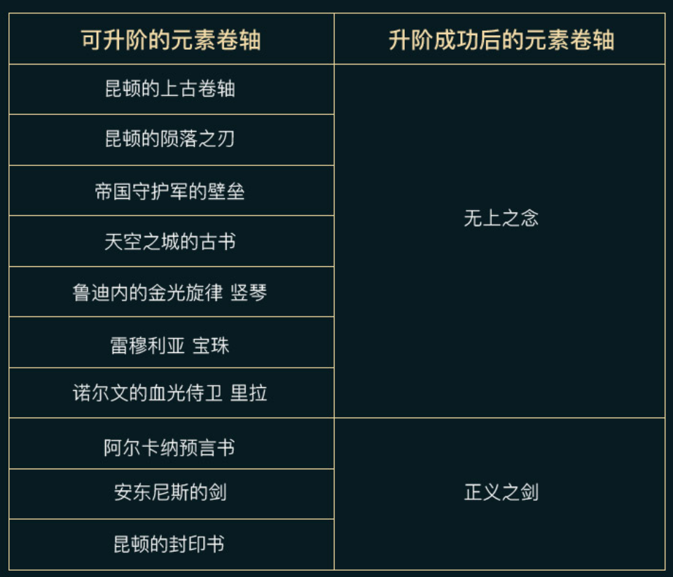 注意:二代卷轴升级后,一代元素无法镶嵌,必须升级二代元素,狂喜除外。