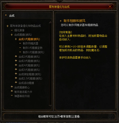 现在有 1代翅膀圣物,只需选择制作1代翅膀(披风)。如果你想提高你的几率,可以添加低级魔晶石